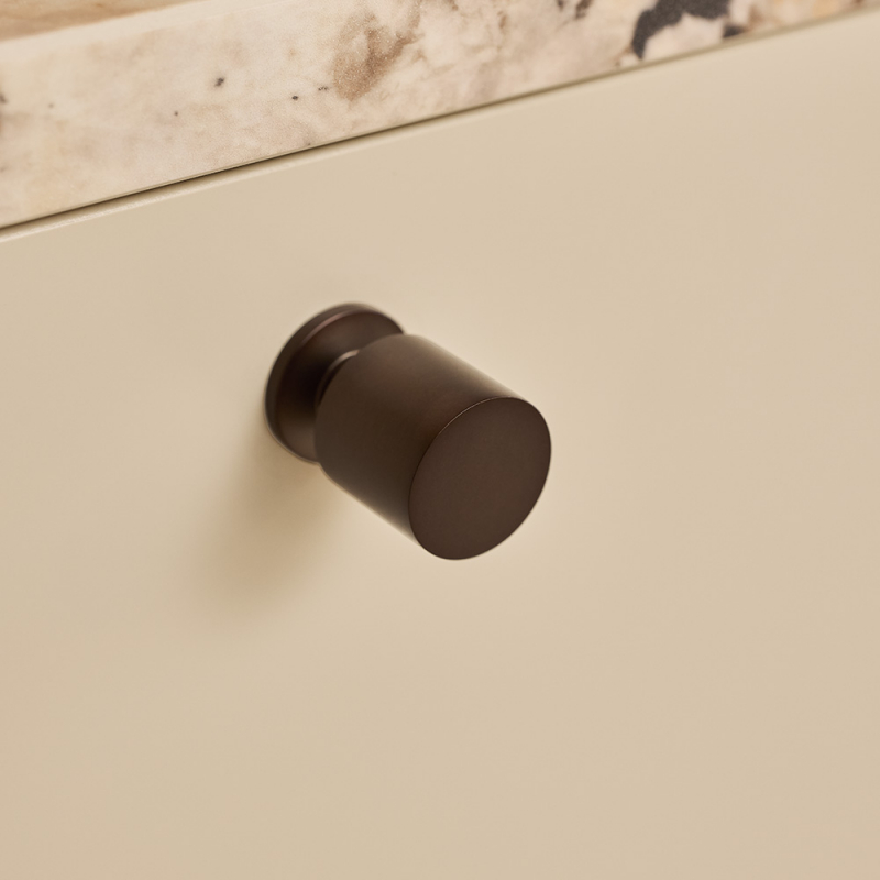 The simple shape makes the knob easy to place in many different environments – from kitchens and bathrooms to wardrobes and other furniture. Knob Solo is available in several finishes, making it easy to adapt the look to the style and material choices of the space.