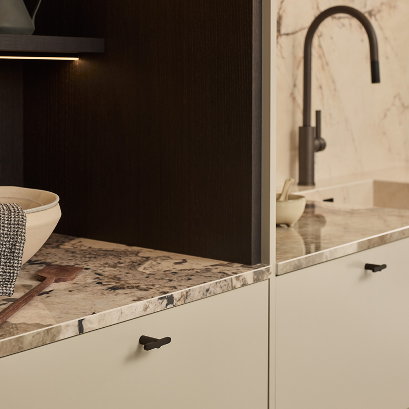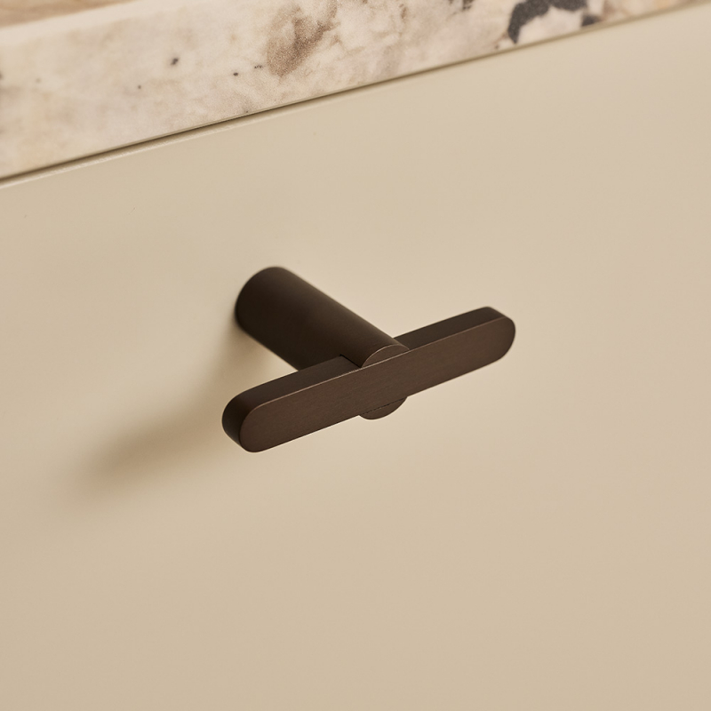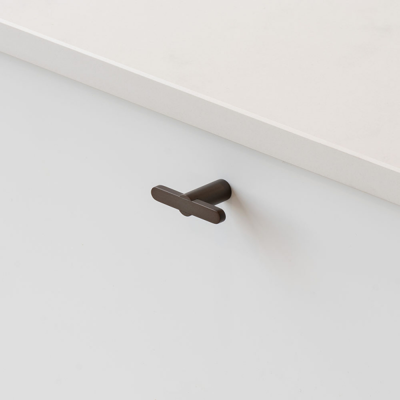 The Flow series is available in four carefully selected finishes – polished chrome, brushed nickel, burnished brass and matt black – making it easy to adapt the details to the style and overall expression of the space. Knob T Flow works just as well in bathrooms as in kitchens, wardrobes and other furniture where a cohesive look is desired together with the other products in the series.