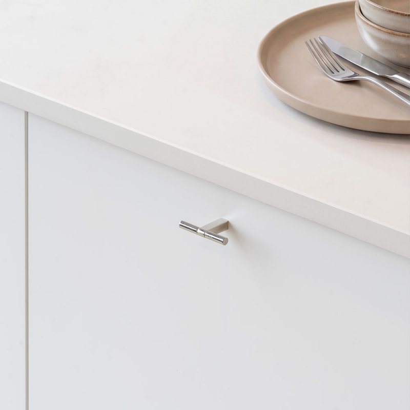 The delicate design makes the knob appear light and stylish on the furniture while still adding character. Knob T Petit works equally well in kitchens and bathrooms as on wardrobes, dressers and other furniture.
