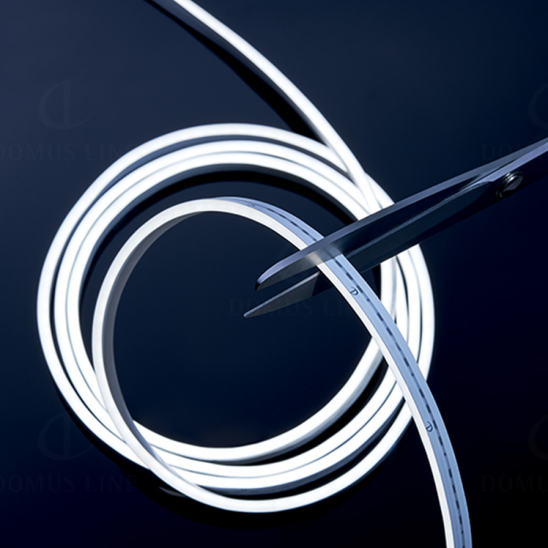Flexy LED AT6 Pro is available in three different lengths – 2 m, 3 m, and 6 m – and can be cut freely without fixed intervals for maximum flexibility. It can be recessed into a 6 x 6 mm groove or surface-mounted using the included 3M adhesive tape. The strip comes with dual connectors.